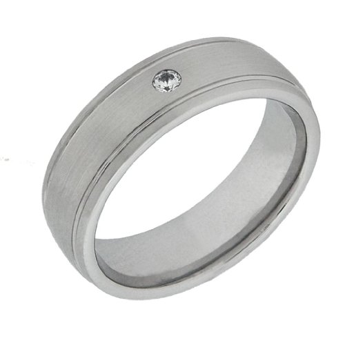Men's Cobalt Ring with .01 TDW Bezel Diamond and Brushed Finish