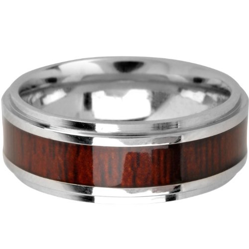 INOX wood inlay band ring crafted from quality cobalt chrome. NOTE: COST of item MAY FLUCTUATE based on size selection. INOX Jewelry is a collection of 316L Stainless Steel jewelry for both men and women. The unique designs range from classic to contemporary; to edgy and urban. Specifications: Cobalt Chrome, Available in sizes 8, 9, 10, 11 and 12. INOX Jewelry Cobalt Chrome Wood Inlay Band Ring